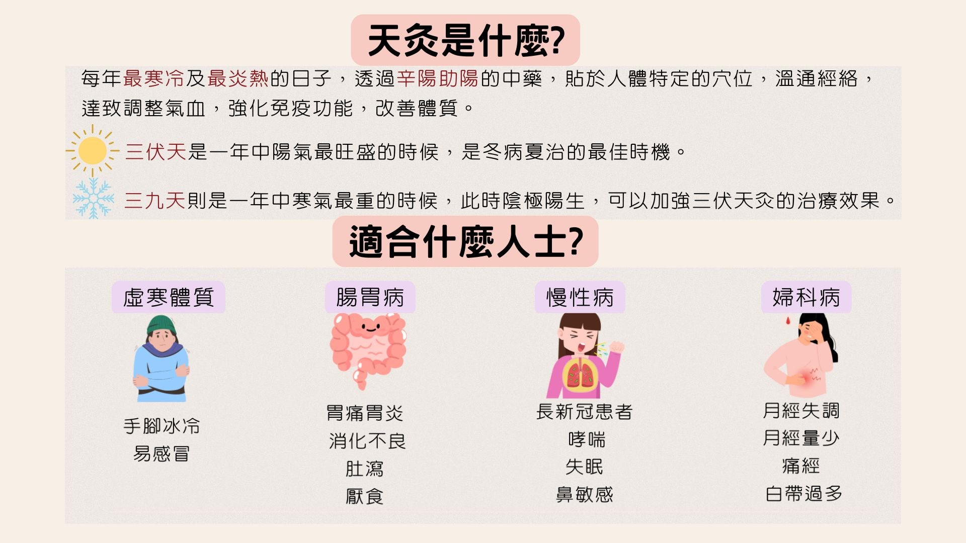 診所提供專病專治的全科中醫診症服務,亦提供針灸、拔罐、耳穴、推拿、正骨復位、刮痧、拔罐、刺絡放血等全方位綜合治療,為病人提供現代化、多元化及精準的醫療服務。
